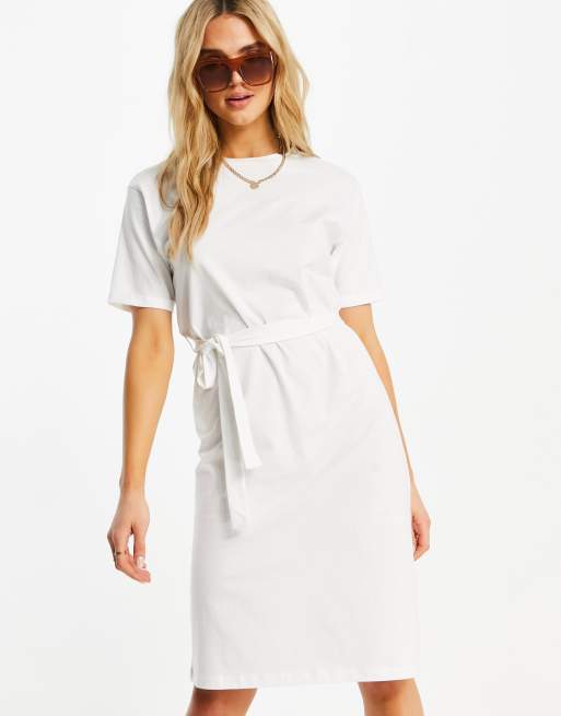 Vestido midi blanco estilo camiseta con cinturón de algodón Aware de Vero Moda - WHITE