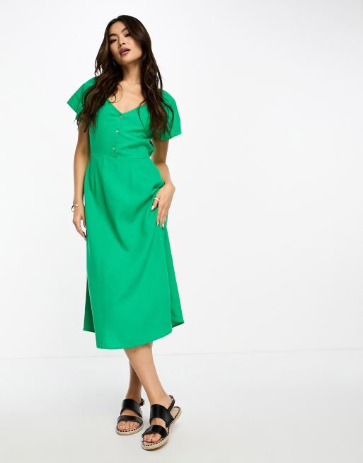 Vestido midi verde con mangas fluidas y tacto efecto lino de Vero Moda