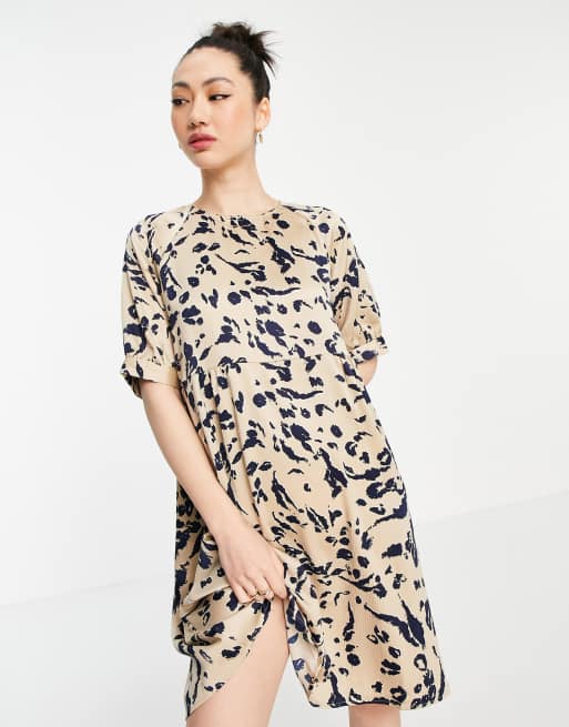 Vestido recto corto beis con estampado abstracto y lazada en la espalda de satén de Vero Moda