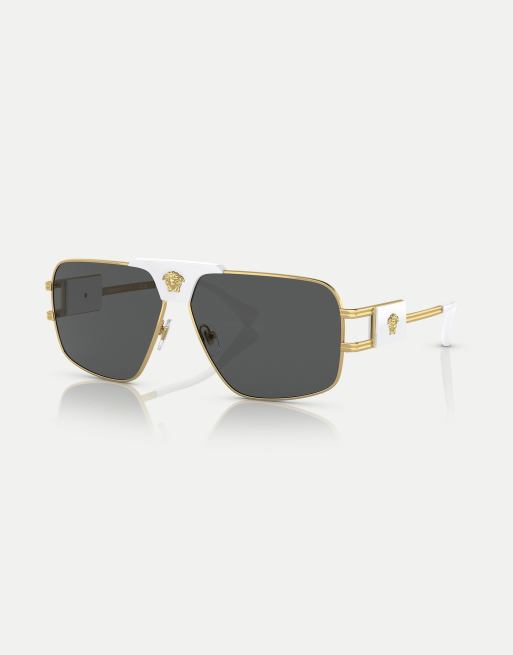 Gafas de sol doradas con montura rectangular y lentes grises de Versace