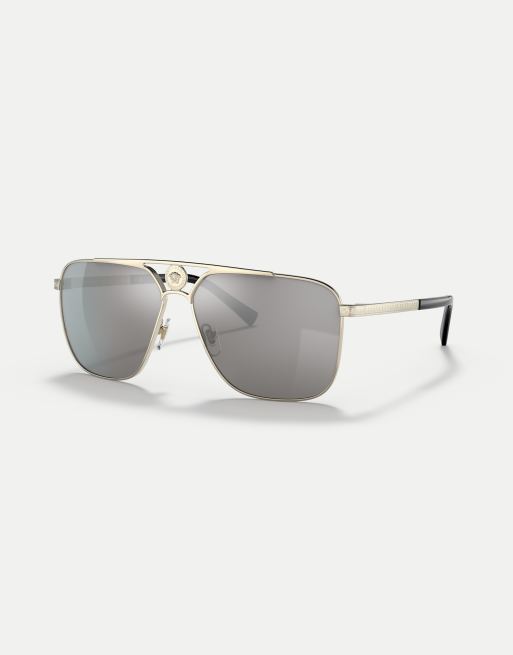 Gafas de sol dorado con montura rectangular y lentes plateadas efecto espejo de Versace