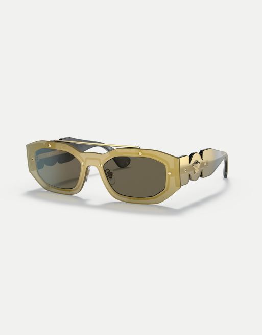 Gafas de sol marrón transparente y dorado efecto espejo irregulares con lentes marrones Biggie de Versace