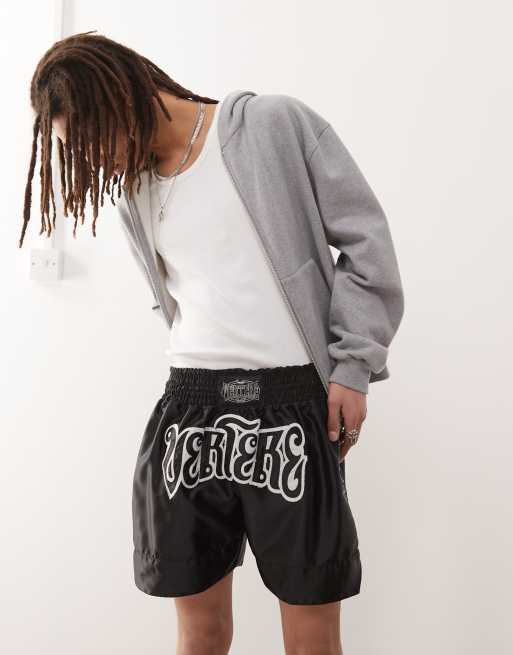 Pantalones cortos negros de estilo bóxer con logo de texto bordado de Vertere Berlin