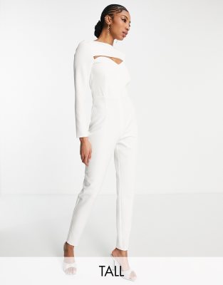 Mono largo blanco con abertura en el pecho y cuello cuadrado de Vesper Tall