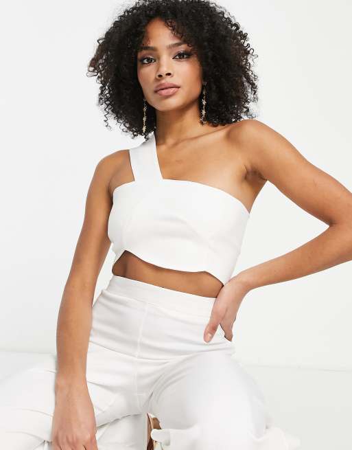 Top corto blanco asimétrico con detalle de tirante de Vesper (parte de un conjunto)
