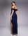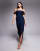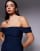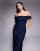 Vestido largo azul marino con escote Bardot, detalle fruncido en la cintura y abertura lateral de bengalina de Vesper