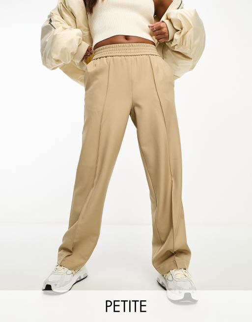 Pantalones beis de pernera ancha con cintura elástica y pinzas delanteras de Vila Petite
