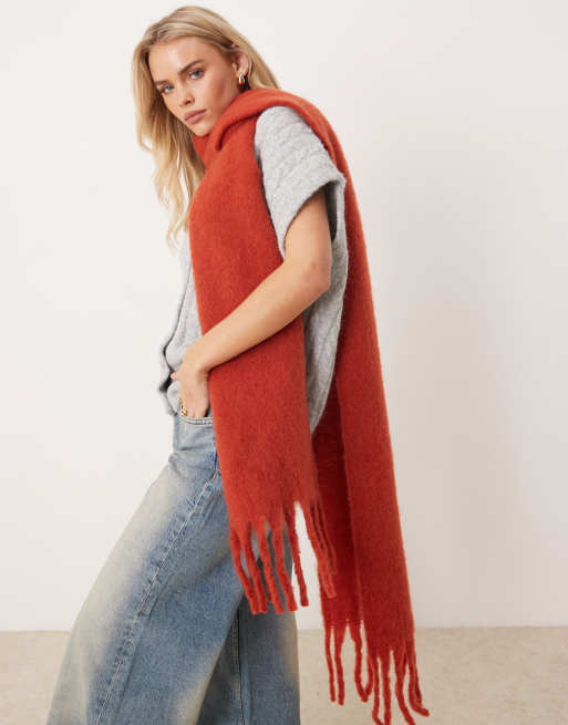Bufanda roja lisa con flecos de tejido muy suave de VILA