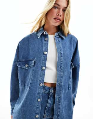 Camisa vaquera extragrande con lavado azul medio de Vila (parte de un conjunto)