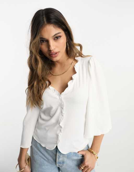 Camiseta blanca acanalada con mangas acampanadas de Vila