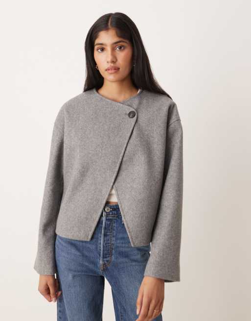 Chaqueta corta gris medio jaspeado cruzada en la parte delantera de lana de VILA