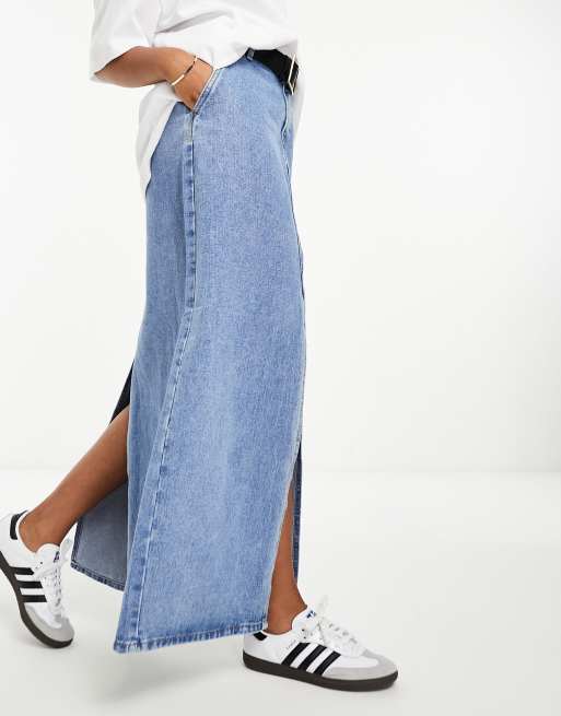 Falda vaquera larga con lavado azul claro y dos aberturas de Vila