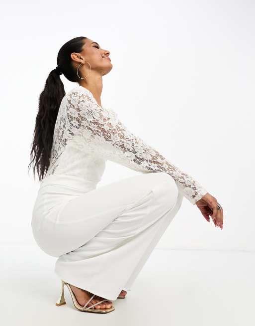 Mono largo de novia blanco de manga larga de encaje de Vila