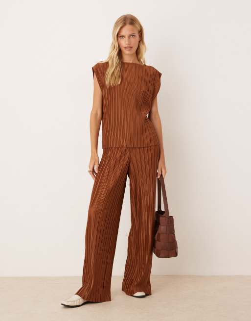 Pantalones color bronce plisados de pernera ancha de VILA (parte de un conjunto)