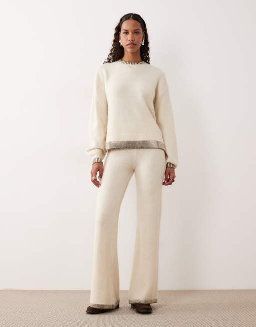 Pantalones color crema de pernera ancha con ribete en contraste de punto de VILA (parte de un conjunto)
