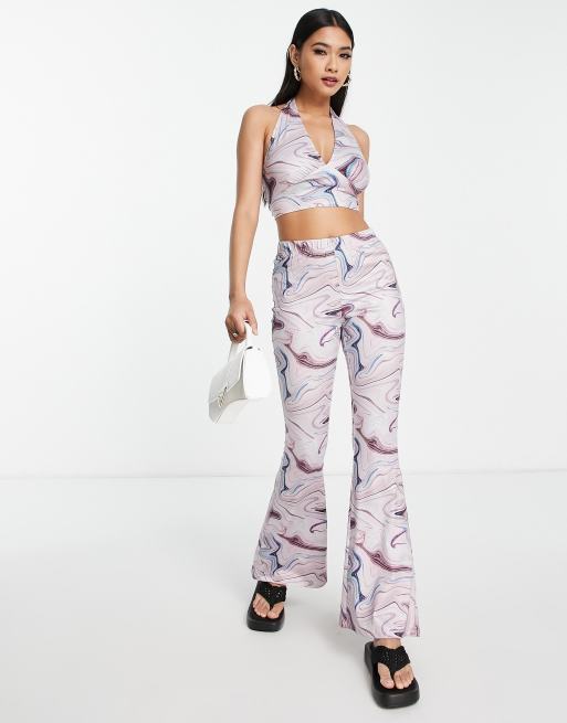 Pantalones de campana morados con estampado de remolinos de punto exclusivos de Vila (parte de un conjunto) - MULTI