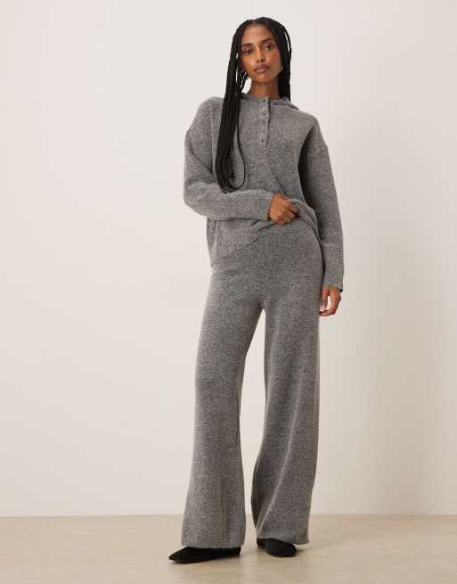Pantalones gris medio melange de pernera ancha de punto de VILA (parte de un conjunto)