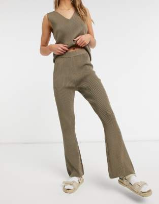 Pantalones marrón topo de pernera ancha en punto de Vila (parte de un conjunto)