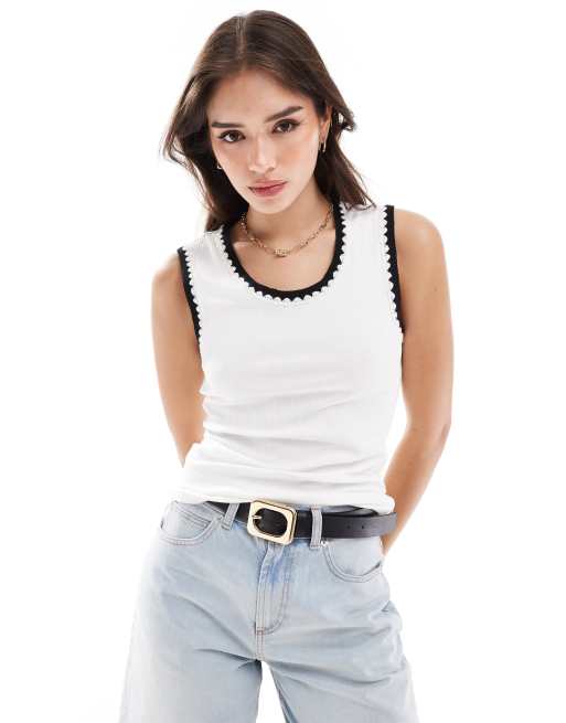 Top color crema sin mangas con ribetes calados negros en contraste de punto de Vila
