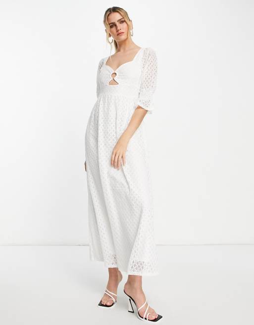 Vestido largo blanco con diseño bordado y aberturas en la parte delantera de Vila