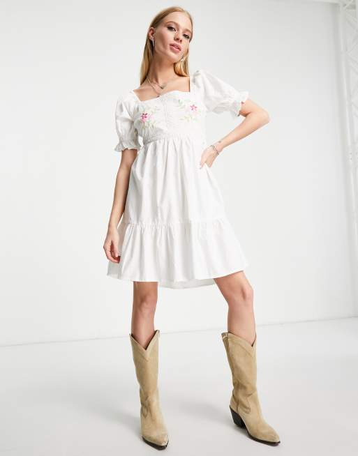 Vestido corto blanco con bordado floral y lazadas en la espalda de Violet Romance