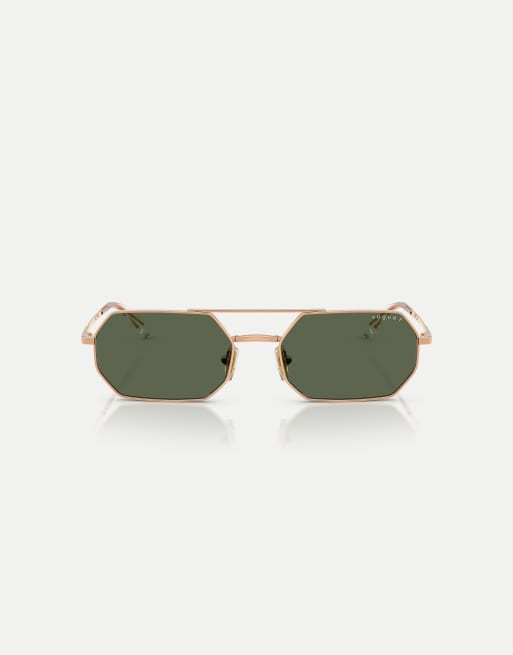 Gafas de sol dorado rosa irregulares con lentes verdes polarizadas de Vogue