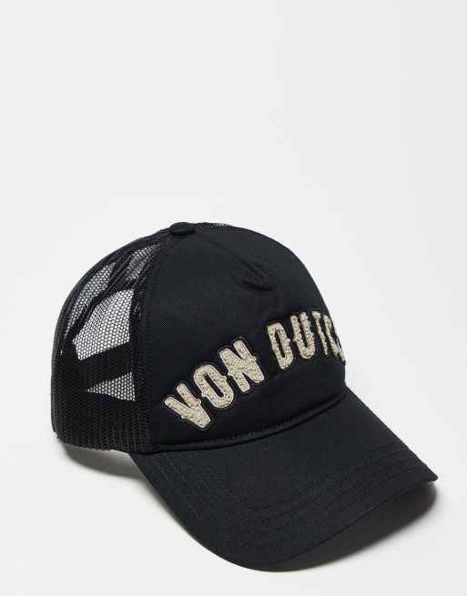 Gorra de camionero negra con logo de bouclé de Von Dutch