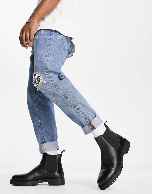 Botas Chelsea negras de cuero con suela gruesa sean de WALK LONDON
