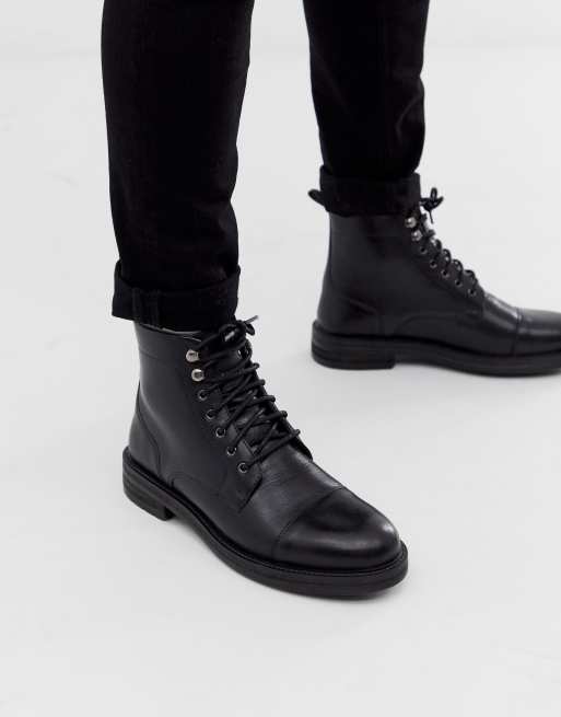 Botas negras de cuero encerado con puntera Wolf de WALK London