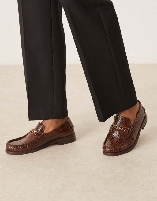 Mocasines color tostado con detalle de cadena de cuero en relieve Dalston de Walk London