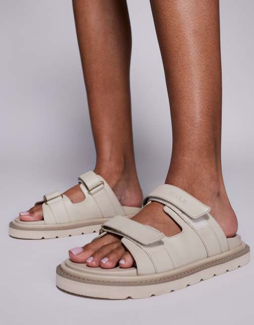 Mules blanco hueso con tiras adhesivas de cuero Budapest de WALK LONDON
