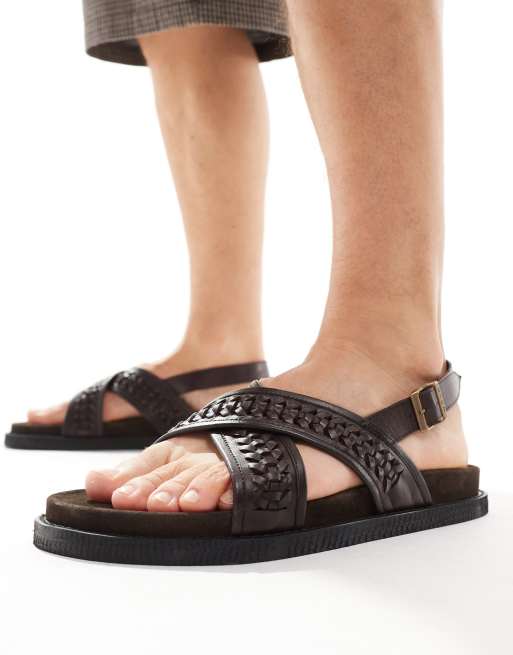 Sandalias marrones con correa talonera y detalles trenzados de cuero Shore de WALK LONDON