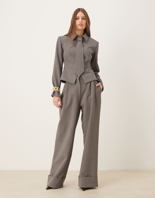 Pantalones de sastre grises de pernera ancha con bajos vueltos Gabriella exclusivos de Wanderdoll (parte de un conjunto)