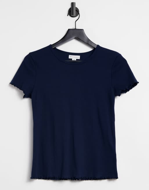 Camiseta azul marino con bordes ondulados de canalé de Warehouse