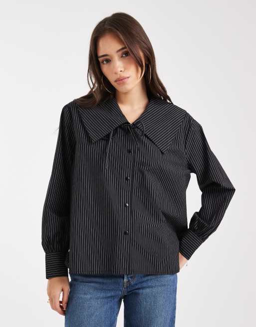 Blusa negra extragrande con raya diplomática y detalle de cuello de Wednesday's Girl