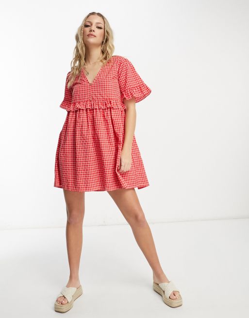 Vestido corto amplio a cuadros rojos de Wednesday's Girl