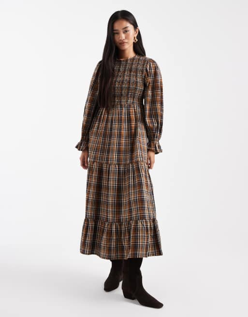 Vestido semilargo a cuadros multicolor amplio y fruncido de Wednesday's Girl