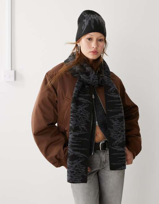 Bufanda negra con patrón gráfico de jacquard de Weekday