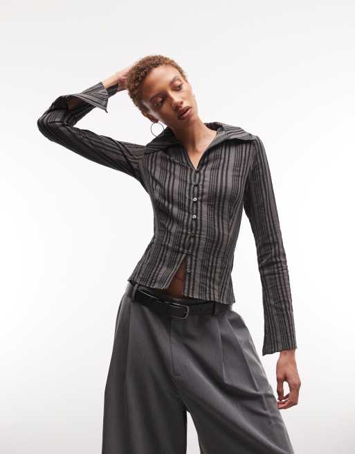 Camisa gris a rayas de manga larga con botones de Weekday