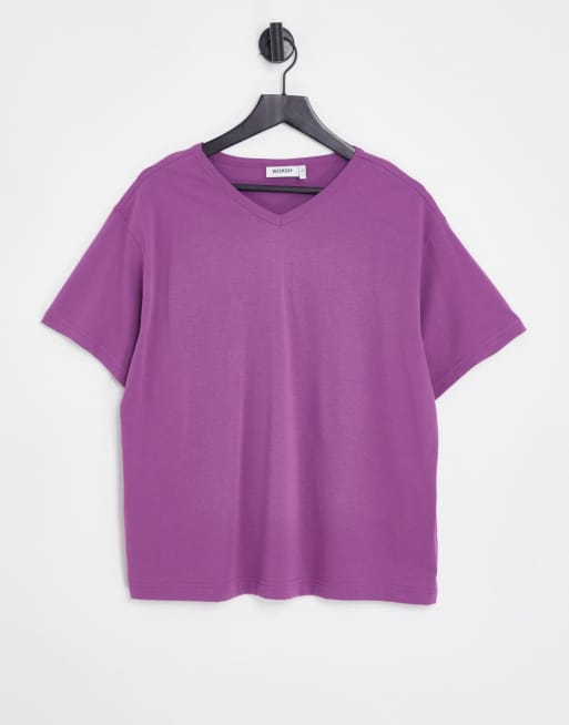 Camiseta morado polvoriento con cuello de pico de Weekday