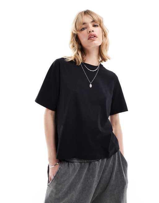 Camiseta negra holgada de algodón Perfect de Weekday