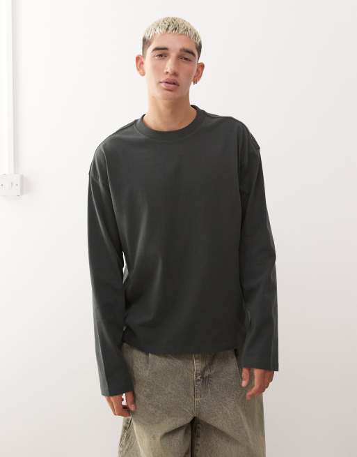 Camiseta verde oscuro de corte cuadrado y manga larga de Weekday