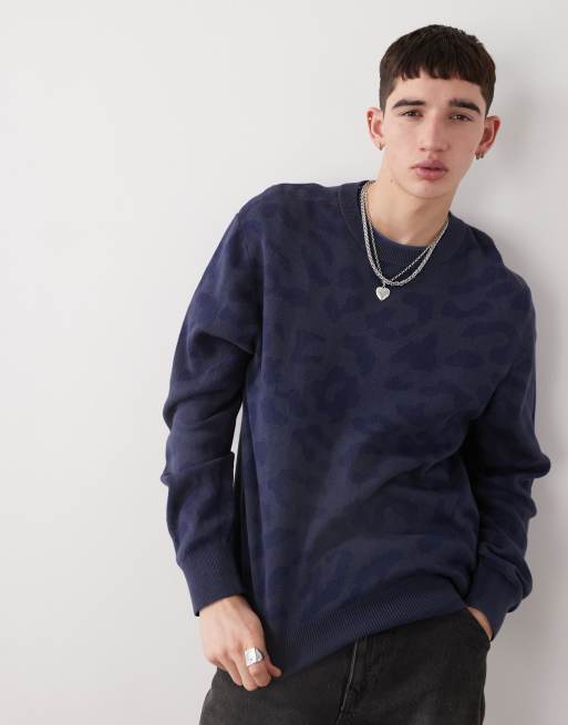 Jersey azul oscuro con patrón de leopardo de jacquard Murray de Weekday