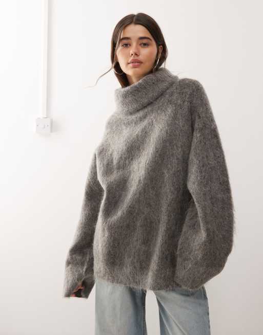 Jersey gris extragrande con cuello alzado de mezcla de lana y lana de mohair premium de Weekday