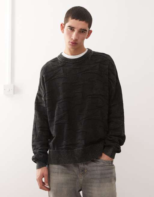 Jersey negro de corte cuadrado con efecto texturizado tridimensional de Weekday