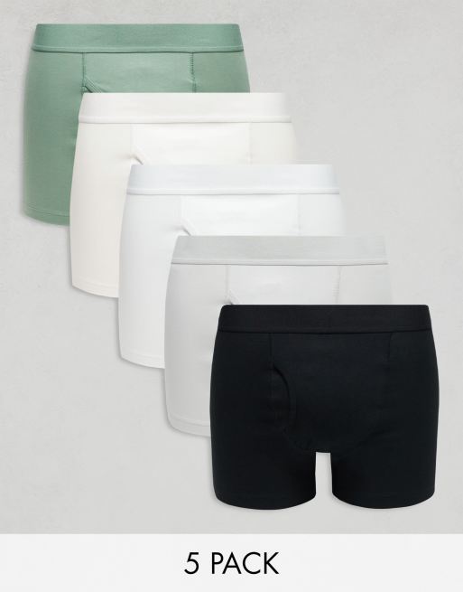 Pack de 5 calzoncillos bóxer de color blanco, caqui y negro de Weekday