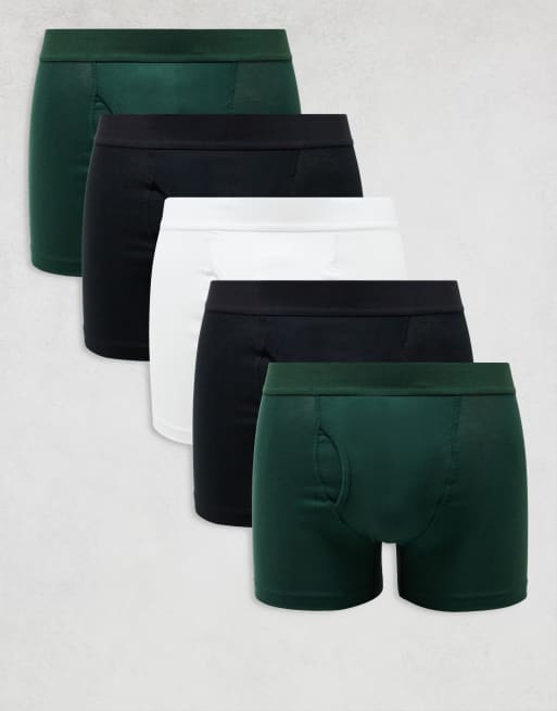 Pack de 5 calzoncillos bóxer de color negro, verde y blanco de Weekday
