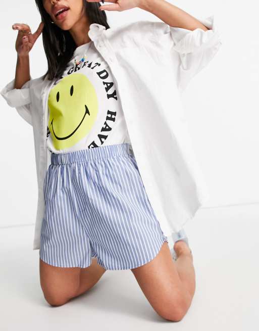 Pantalones cortos Weekday Day de algodón a rayas blancas y azules - MULTI