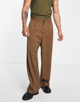 Pantalones de traje marrones extragrandes Uno de Weekday
