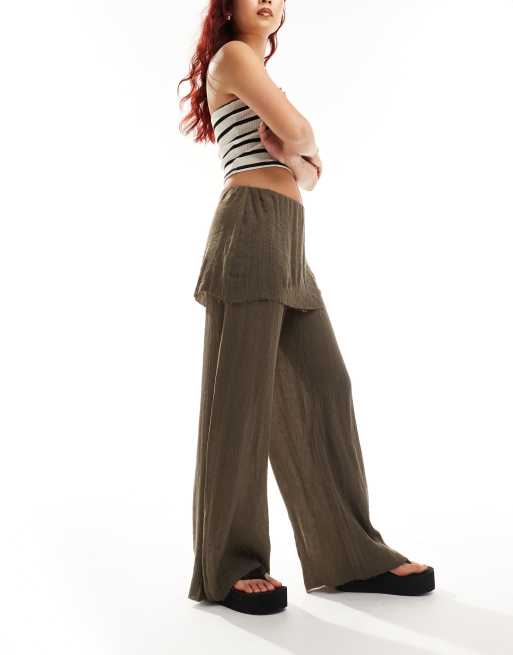 Pantalones marrones con falda de tejido vaporoso Amra de Weekday